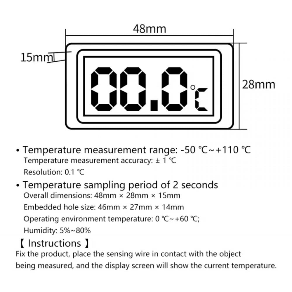 مقياس حرارة رقمي صغير بشاشة LCD ومسبار درجة حرارة مقاوم للماء