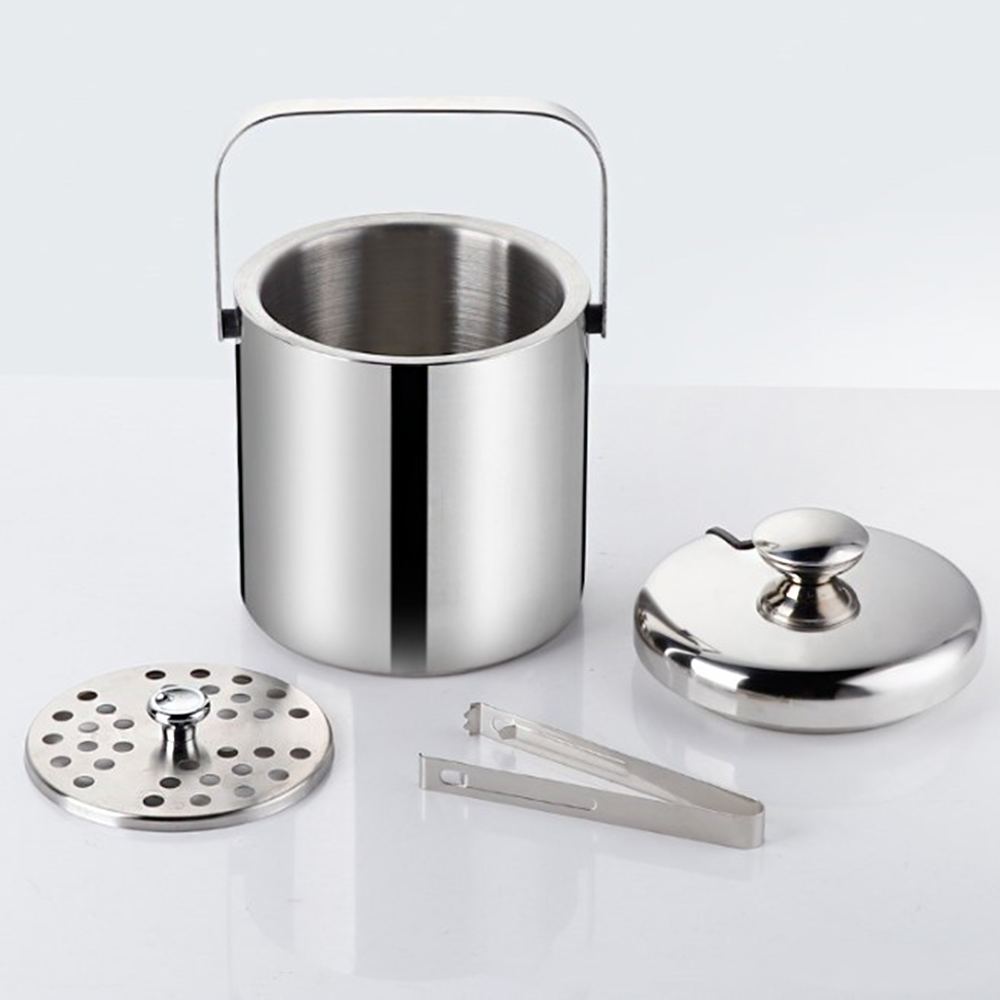حافظة ثلج مع ملقاط استيل