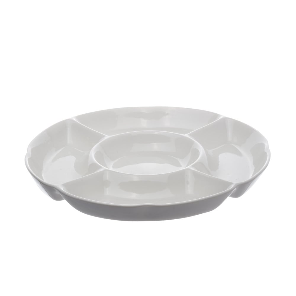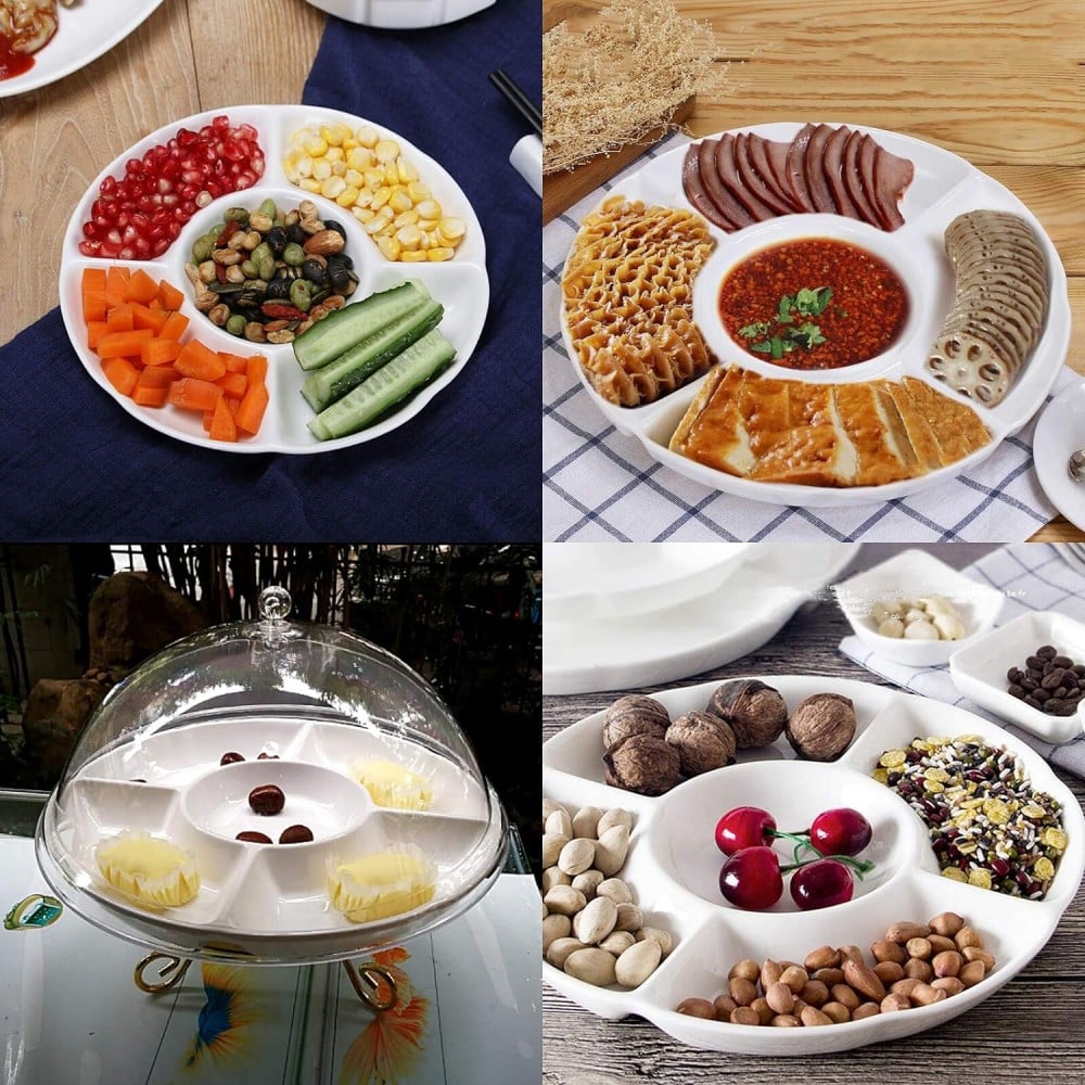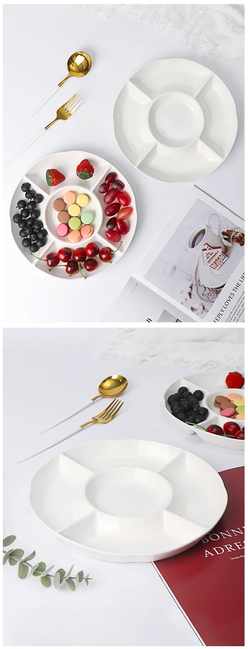 طبق برسلان أبيض ثقيلمتوفر بعدة مقاساتمكون من 5 أقسام للوجبات الخفيفةطبق غداء مقسم/ صينية تقديم الطعام المستديرة / صينية تقديم المكسراتيمكن استخدامه داخل الفرن وسهل في التنظيف