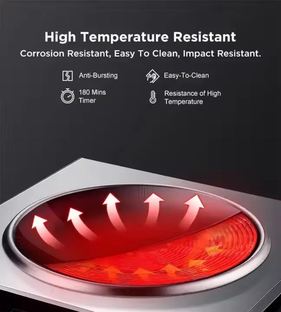 موقد حثي احترافي عالي الطاقة، مصمم خصيصًا للعمل مع أواني الووك. يستخدم هذا الجهاز المدمج، الذي يوضع على سطح الطاولة، تقنية الحث الحراري لتوفير حرارة فورية وكثيفة ودقيقة، وهو أمر ضروري لتحضير أطباق القلي السريع الأصيلة.