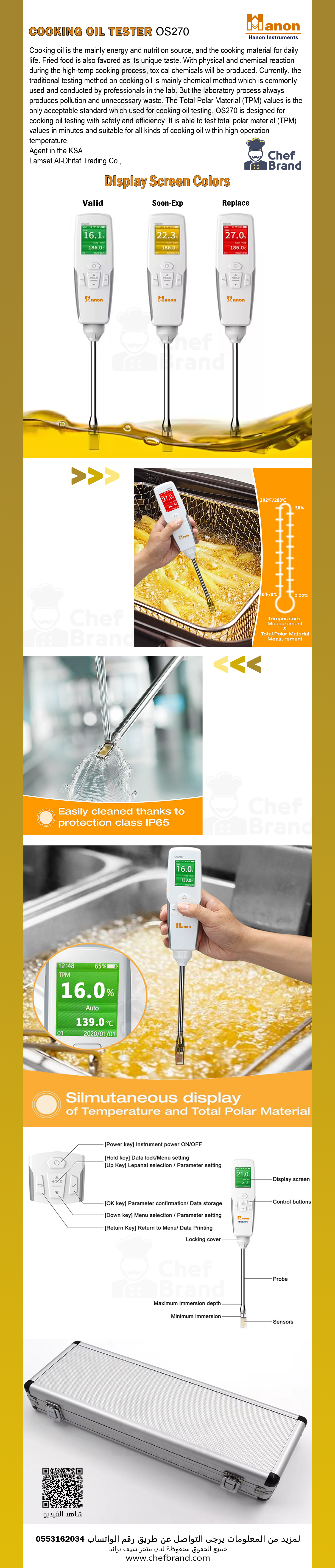 Gives you an accurate overview of the quality of your frying medium with a percentage value