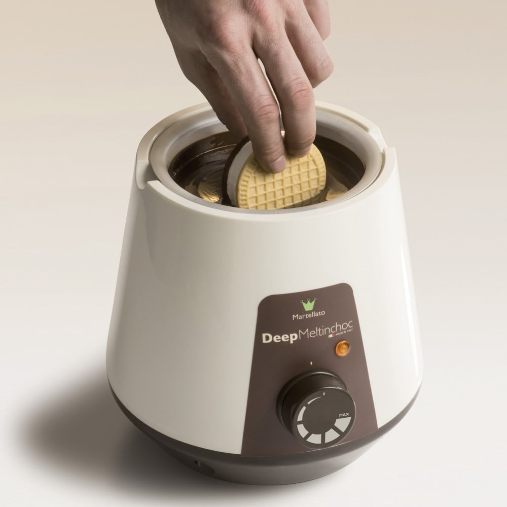 Its technical features, including the thermostat that allows you to regulate the precise temperature and the removable basin in anodized aluminium for easier cleaning, make Deep Meltinchoc an essential item.