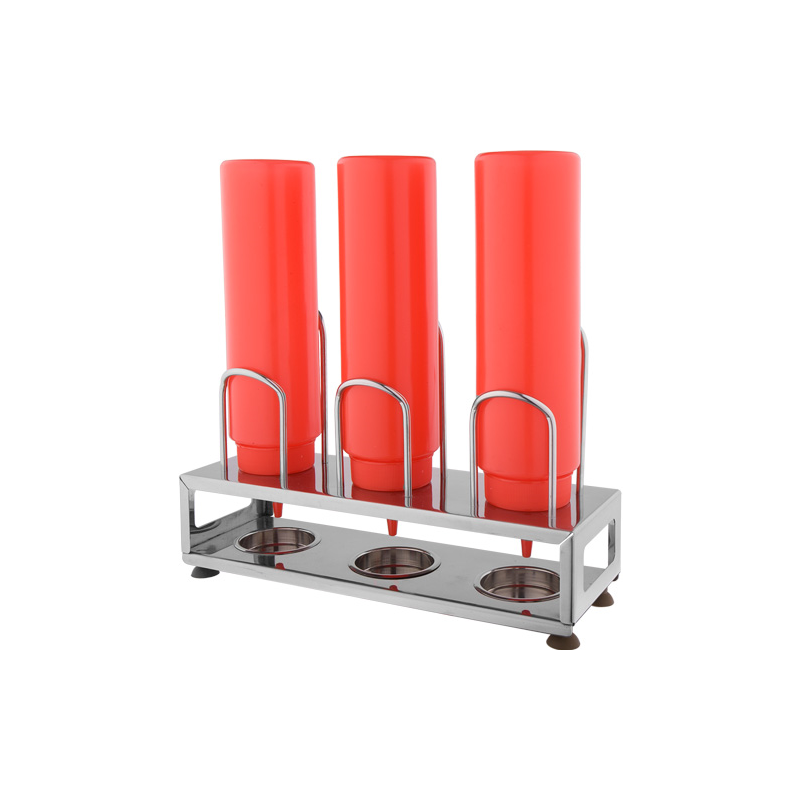 A practical holder made of high-quality stainless steel, designed to neatly organize sauce bottles on the table or in the kitchen. Durable and easy to clean, making it perfect for homes, restaurants, and cafés.